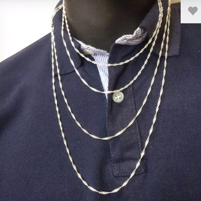 Corrente GRUMET TORCIDA com aproximadamente 2 milímetros de espessura e comprimento de 60cm e 70cm. Joia em prata legítima 925