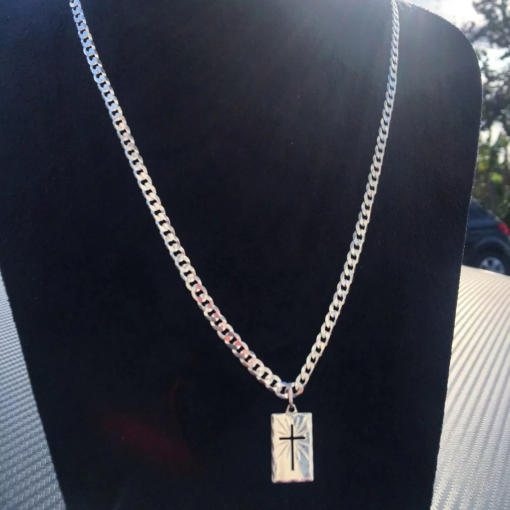 Modelo: Grumet & Pingente de plaqueta com crucifixo
