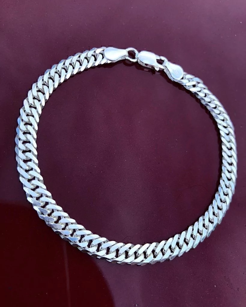Pulseira elo duplo com aproximadamente 6 milímetros de espessura e comprimento padrão de aproximadamente 21cm. Joia em prata legítima 925